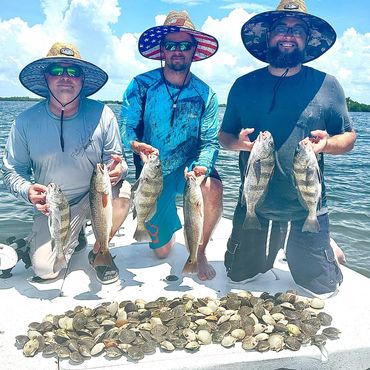Sometimes you may see manatees, dolphins, pink flamingos, turtles, bald Eagles, osprey, pelicans, and other bird species along. While scalloping you may see shallow water reefs with sponges, fish, starfish, seahorses, stone crabs, conchs, sea turtles, and octopus.
